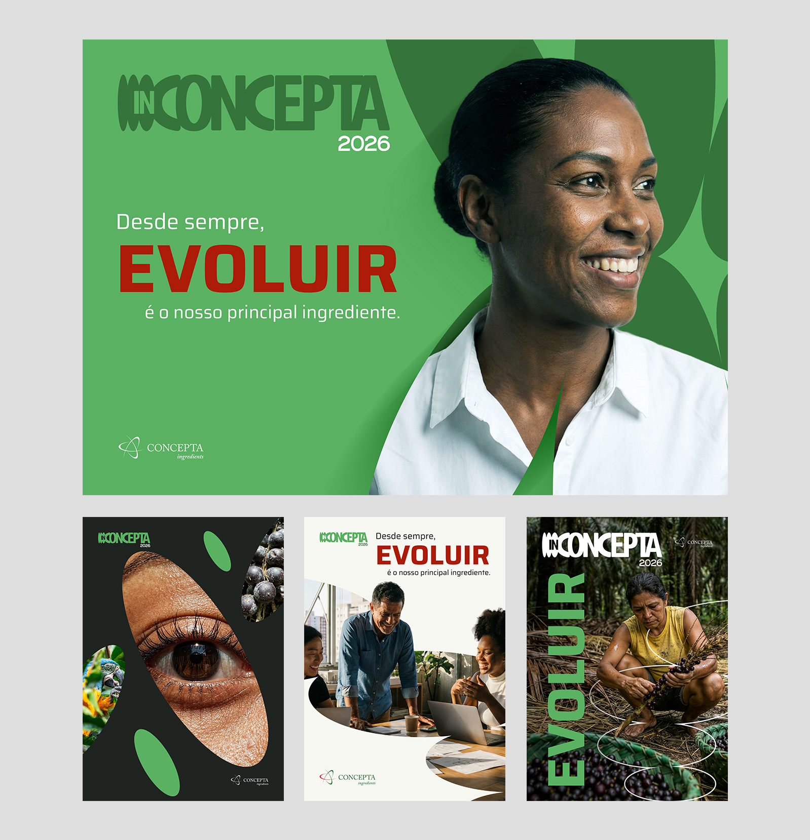 O mote “Desde sempre, EVOLUIR é o nosso principal ingrediente” foi integrado à peça principal para representar o tema do evento. Afinal, foi a busca por evoluir — sempre presente na trajetória da empresa — que a conduziu à sua nova fase.